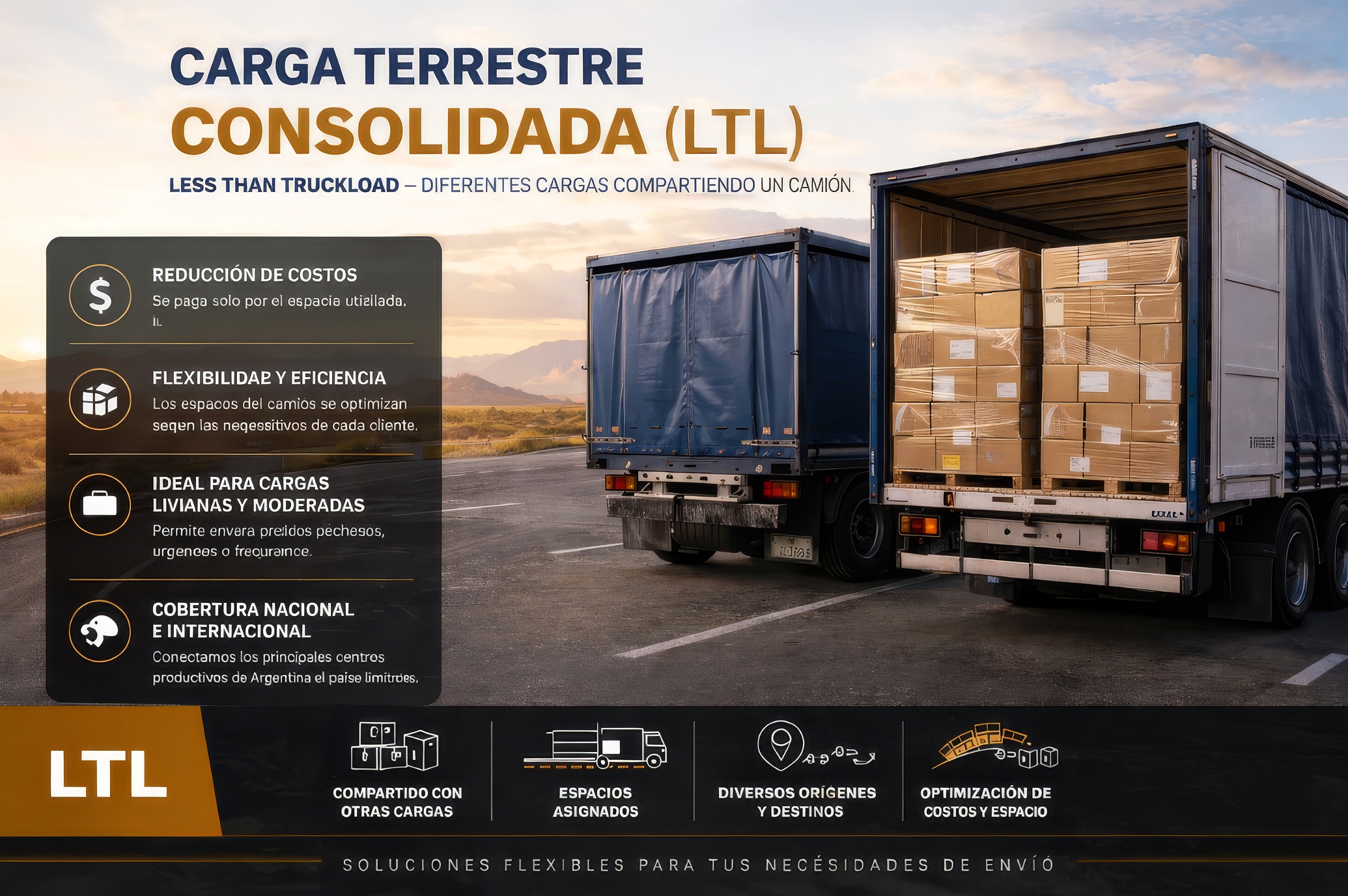 Para envíos que no llenan un camión completo, ofreciendo una opción económica al consolidar cargas de diferentes clientes en un solo camión. Tenes rutas directas de importación y exportación para todo los puertos que operamos.